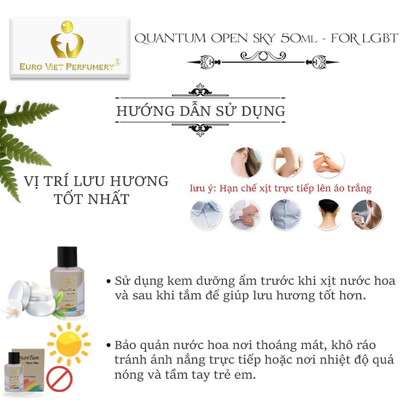 Mở đầu cho câu chuyện nhân văn, dòng sản phẩm nhắm tới các bạn phi giới tính, cảm ơn cộng đồng LGPT vì đã cống hiến cho xã hội, bằng sự nhận diện cờ 7 màu, tên sản phẩm Open Sky. Trong ánh sáng của bầu trời trong lành bên trên thành phố, hình bóng thanh lịch của mùi hương dần được hé lộ. Cảnh quan đô thị tấp nập và kiến trúc hiện đại xung quanh đã được đưa vào mùi hương đầy tính tượng hình Open Sky.