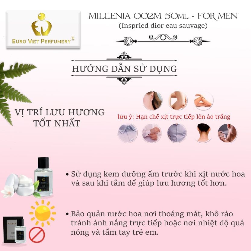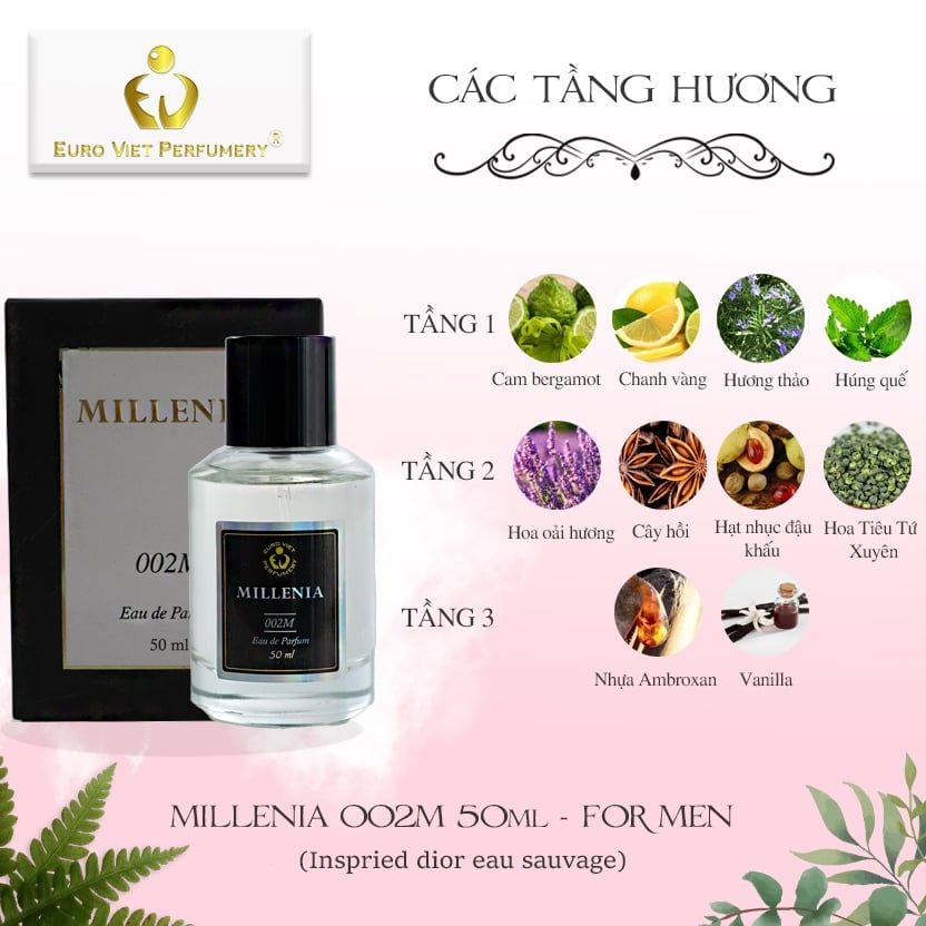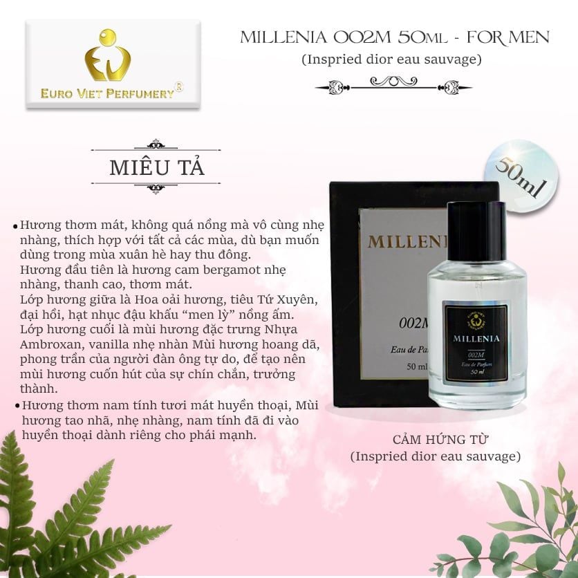 Nước Hoa Nam MILLENIA 002M Nam Tính, Mạnh Mẽ, Cuốn Hút Eau De Parfum Lưu Hương 7-12 Tiếng 50ml. CAM KẾT HÀNG CHÍNH HÃNG 100% TỪ CÔNG TY SX-TM-XNK NƯỚC HOA EURO VIET